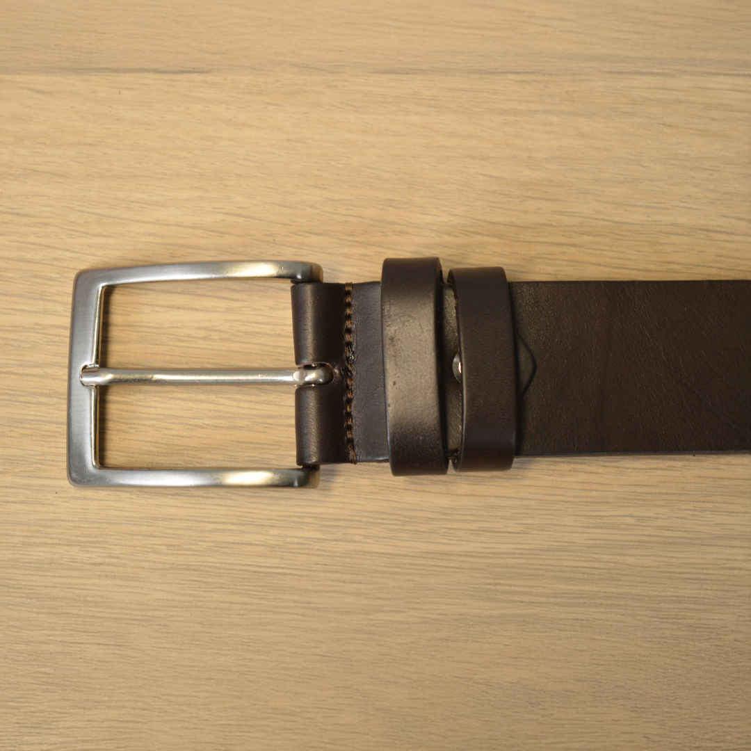 La nostra cintura in pelle opaca di vitello, color testa di moro, è la scelta perfetta per chi desidera un accessorio elegante, versatile e di qualità superiore. Realizzata con cura artigianale in Italia, unisce stile classico e durata nel tempo grazie a materiali selezionati e finiture impeccabili.