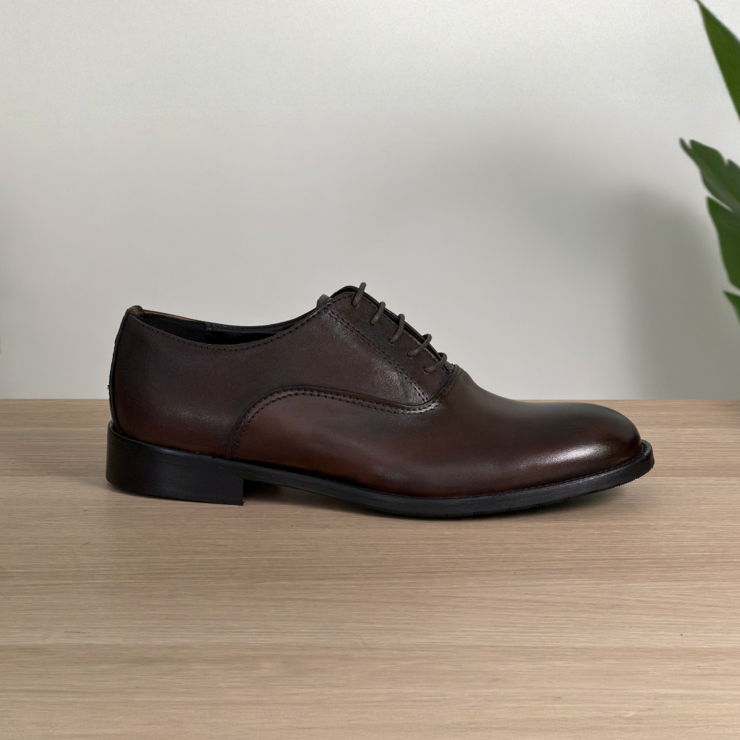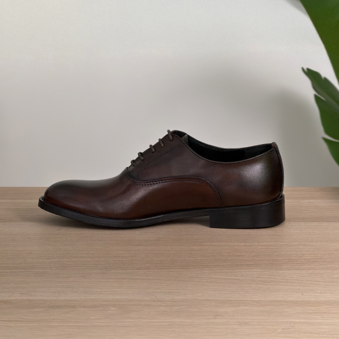 Francesina in pelle liscia di vitello color testa di moro, interamente realizzata in Italia, il modello per eccellenza dell’eleganza maschile.