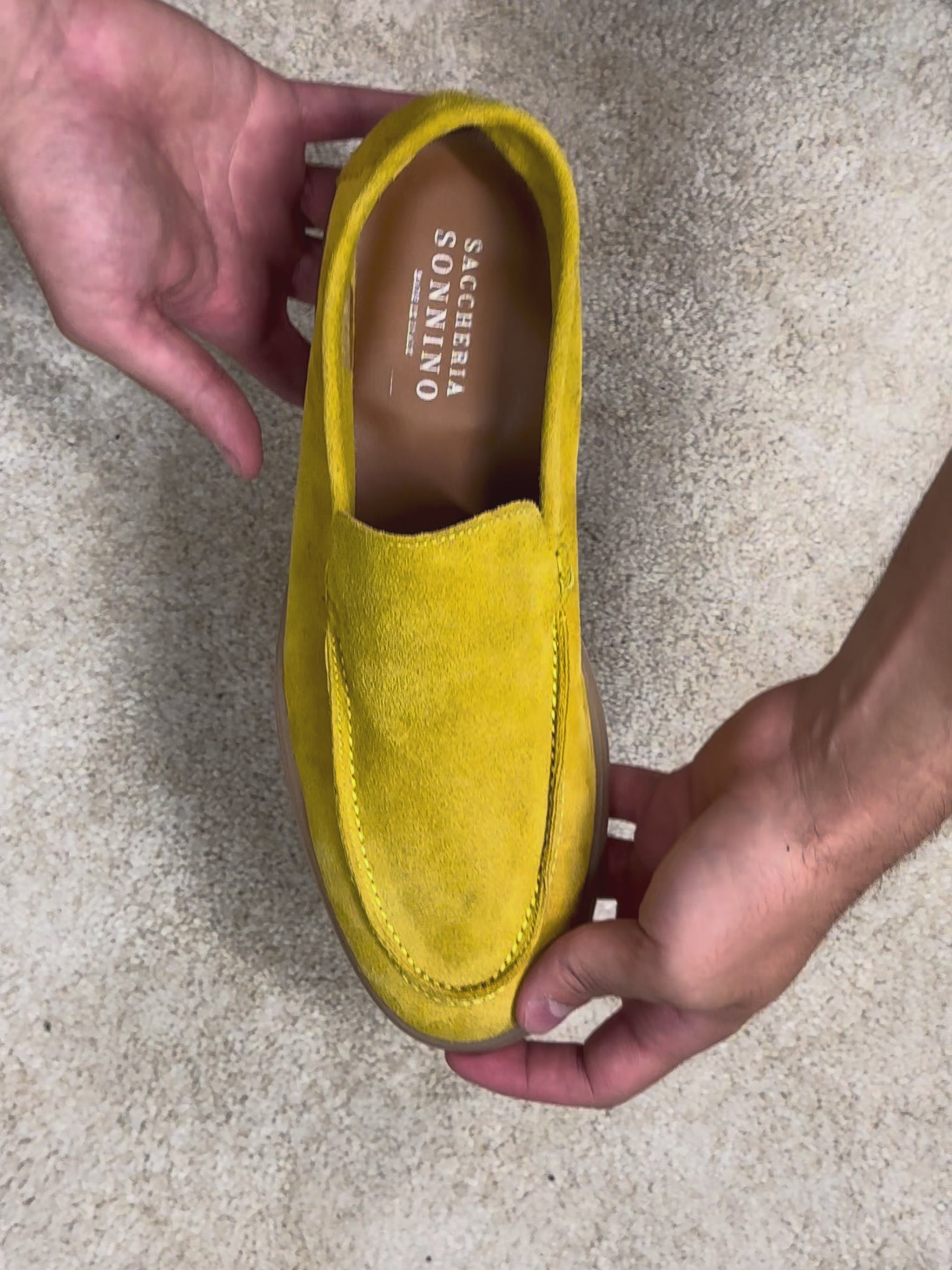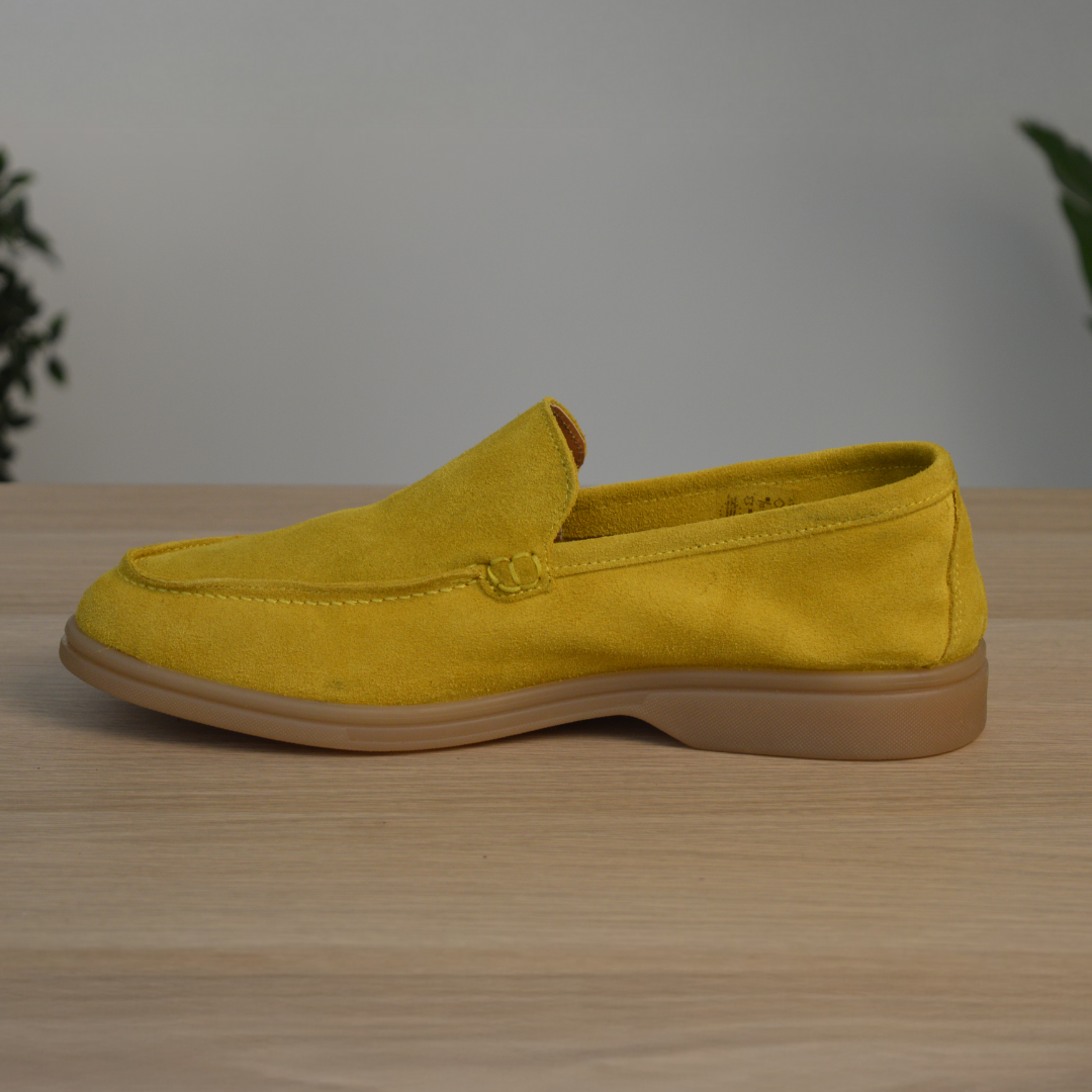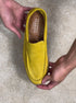 Mocassino in pregiata pelle scamosciata color ocra, interamente realizzato in Italia, progettato per chi desidera comfort senza rinunciare allo stile.