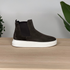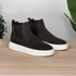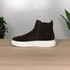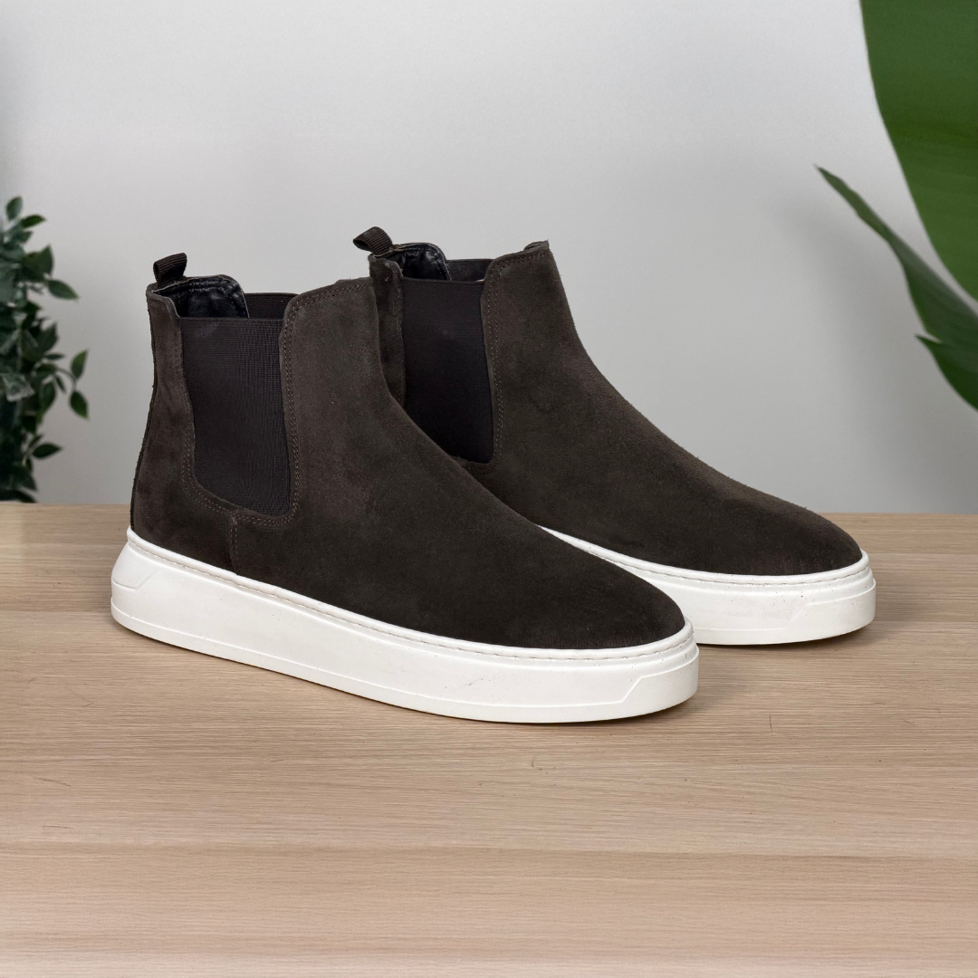 Stivaletto Chelsea in morbido camoscio con suola alta in gomma bianca, interamente realizzato in Italia, perfetto per chi cerca uno stile contemporaneo e disinvolto senza rinunciare alla qualità.