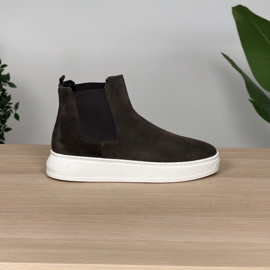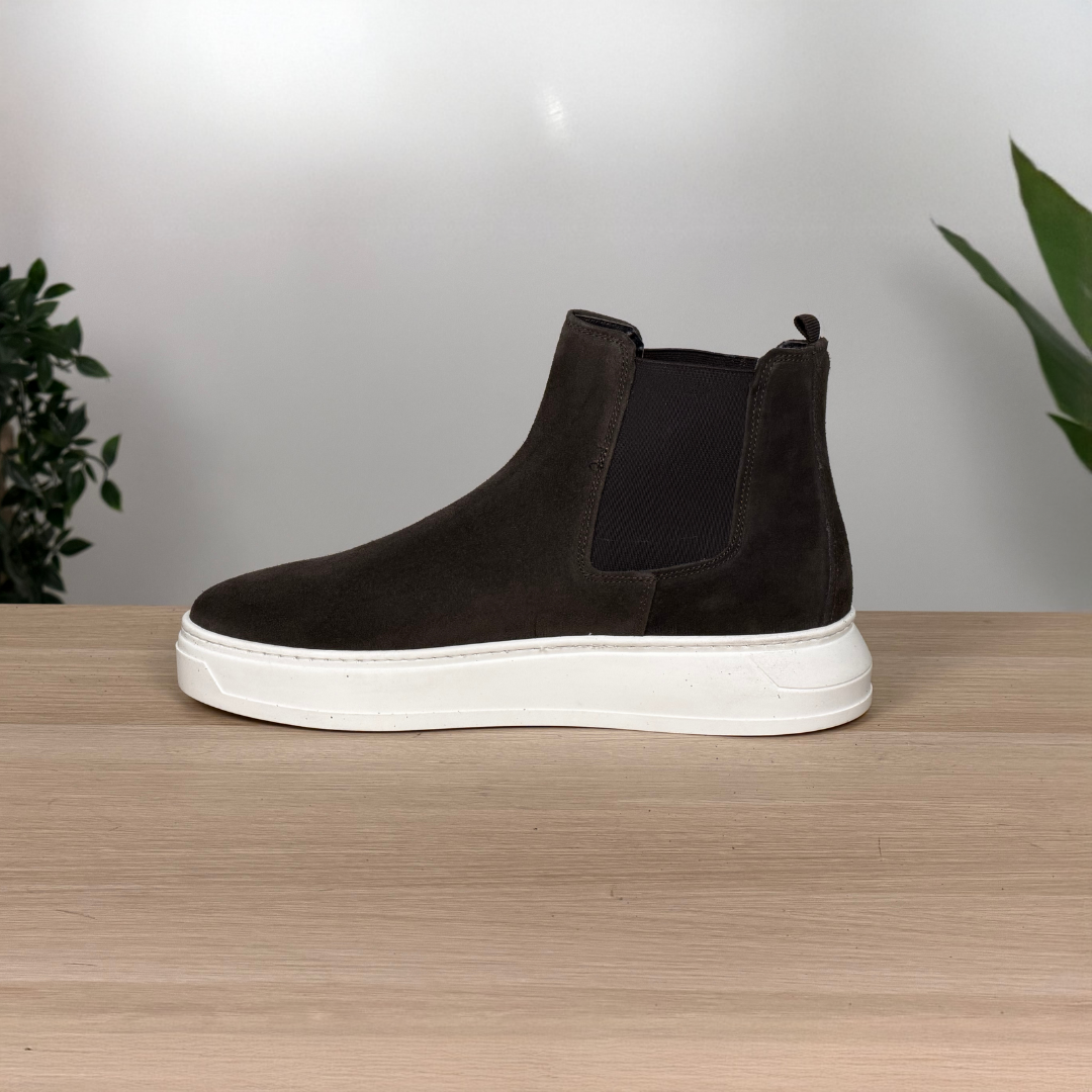 Stivaletto Chelsea suola bianca sagomata in pelle scamosciata - Testa di Moro